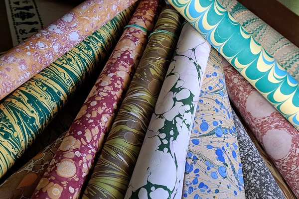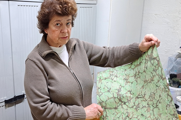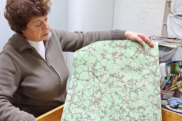 The imprint of swirling ink on paper makes no two equals and it is this uniqueness that Adela Yustas Romo values the most. In paper marbling she has found a perfect match for her experimental curiosity. As one of the few in the province of Cantabria dedicated to this craft, Adela initially struggled to find suitable quality paper for her books. She turned this challenge into an asset. She learned Japanese decorative paper making techniques such as suminagashi, orizomegami, momigami and itajime, so she could handcraft her own paper. She used this not only for her own books, but also as a supplier to others seeking high quality designs. Today, Adela travels the country to attend specialised book fairs where she can exhibit her work and allow clients to explore the tactility of her paper and see its true colours first-hand.