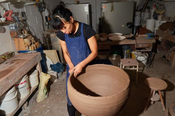 After graduating in Cognitive Psychology at the Aichi Gakuin University, Akiko Hirai worked in advertising but very quickly discovered it was not for her. Looking for a change in her life, at the beginning of the millennium, Akiko left Japan for London. This is where she enrolled in a pottery course and how her new path as a ceramic artist began. Today, she is one of the UK's leading creative potters. Combining traditional Japanese methods and contemporary design, she uses a variety of different building techniques. "I begin with rough dark clay, and add multiple layers of glazes and slips in lighter tones," explains Akiko. The result are pieces that are deeply textured and visually complex.