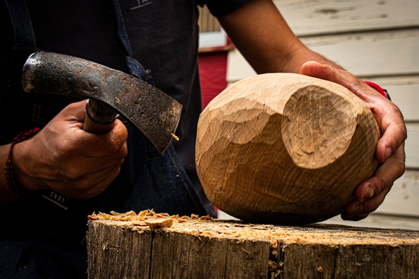 Alfonso Moya did his elementary and high school education in Santiago. He always wanted to study art, but he did not have the support of his family, so he started studying electronics. He never finished because he was always spending time at cultural centres and involved in the world of art and crafts. "When I was a child I always looked at the furniture workshops that were close to where I lived, I would ask for scraps of wood and when I got home I would experiment with knives and chisels. It was my way of playing. That is how I learned my craft, by playing," says Alfonso. At the age of ten he had made his first piece: a wooden spoon that he was asked to make as homework for school. "I chose this craft because I love it. It lets me be free and express myself, say what I believe and see. It is my way of writing," he adds. He currently lives in the Araucanía region of Chile where he is surrounded by forests, traditions and culture, all closely linked to wood.