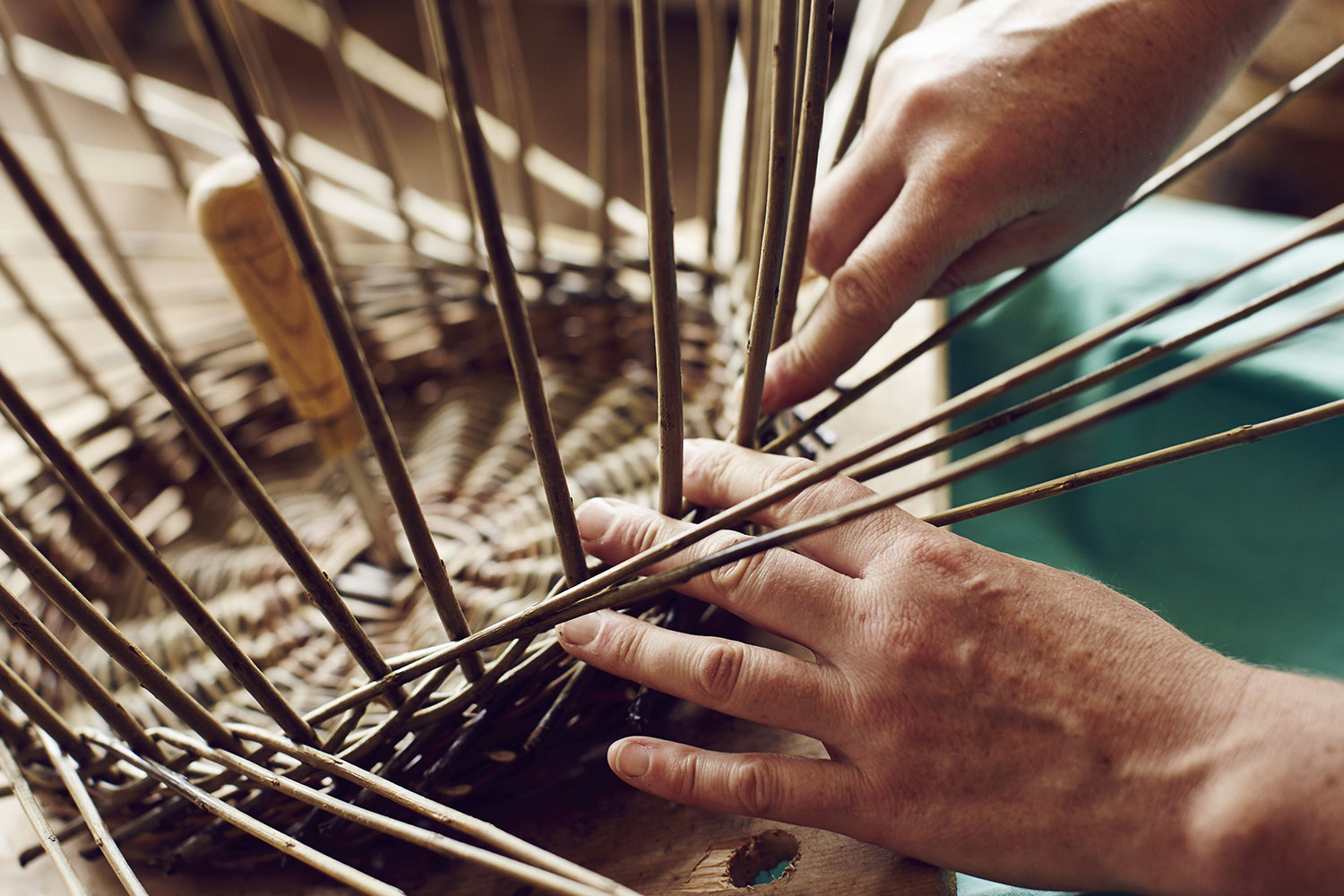 Swimming underwater was Annemarie O’Sullivan’s childhood obsession, and when she made her first basket at the age of 30, she experienced a familiar sensation. “The movements had the same feeling of fluidity, repetition, building of momentum, intensity and freedom as swimming underwater gave me.” That was on a one-day course, but so captivated was she by the experience that before long she enrolled on a five-year, part-time course at City Lit in London, where she is now the lead willow tutor. Annemarie grows her own varieties of willow near her home in Sussex and from these weaves all manner of objects. Some are functional, others more sculptural, such as a recent body of work for the brand Hauser & Wirth.