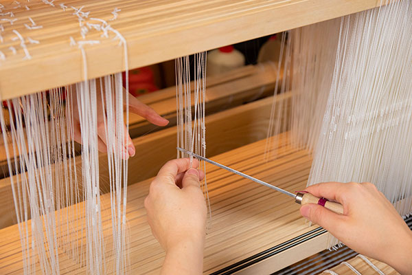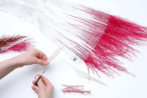 By initiating surprising encounters between rare yarns and marrying different skills, Aurélia Leblanc creates hand-woven textiles of unique character. To her, “weaving is all about storytelling, it is the poetry of materials coming together.” This approach has led her to focus on collaborations with major haute couture houses, including Christian Dior and Schiaparelli, as well as to interior decoration projects. Aurélia relies on her artistic training at the Royal Academy of Fine Arts in Brussels to reinvent weaving and its interaction with other craft techniques, like embroidery or printing. However, it was her first job as an orthotist, specialised in the making of tailor-made corsetry, that first awakened her desire to follow a creative path.