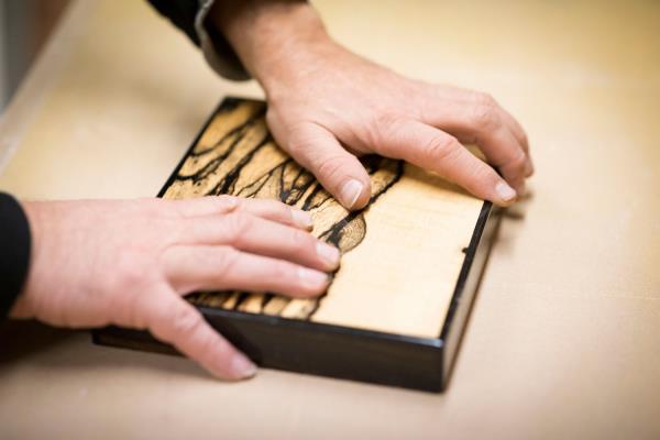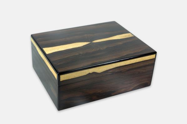 After 25 years of working in finance Walter Bellini felt the need to make a drastic career change and create with his hands. He trained for two years at the Boulle school where he learned cabinetmaking and marquetry, and subsequently specialised in the creation of boxes. The choice was not as surprising as it may seem, as his grandfather was a carpenter, and Walter spent his childhood in Italy surrounded by woodworking – it was more of a return to a familiar atmosphere. Soon after his training he set up his workshop in Asnières-sur-seine, where he designs and produces boxes and office ornaments, using precious wood and rare materials. Walter Bellini uses wood with unique veins that allows him to highlight some of the most intricate and beautiful aspects of nature in his creations.