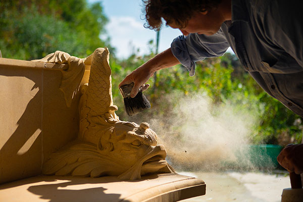 The Cardozo Kindersley Workshop in Cambridge was founded by David Kindersley in 1946 and is now run by his widow, Dr Lida Lopes Cardozo, and her daughter-in-law, Roxanne Kindersley. To bring beautiful letters to life in the modern day, the workshop applies the knowledge and traditions of a craft dating back thousands of years. The team of master artisans and apprentices design, cut, paint and gild entirely by hand, working without machines in favour of hammer and chisel. The atelier specialises in lettering in stone, extending to glass, metal, wood and on paper. Their work includes memorials, commemorative plaques, heraldic carving, sundials, sculpture, bookplates, typefaces and lettering cut directly into buildings.