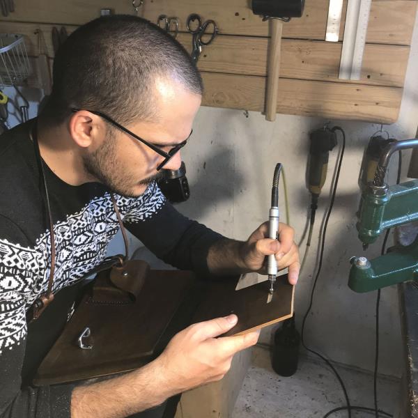 Daniel Savu has always been drawn to manual activities and projects since childhood. He comes from a large family, with eight children. From a young age, his father instilled in him the skill and enthusiasm for working with his hands. However, it wasn't until adulthood, after pursuing several different occupations, that Daniel found his true passion: the one for leatherworking. In 2014, he started to create leather pieces in his home and he opened his workshop a year later. He prefers to do all operations manually, at his own pace, using old tools and techniques. His muse and main supporter in business and life is his wife, Miruna, who inspires him in everything he does. Daniel pays great attention to detail and considers the simplicity of shapes as the true expression of beauty.
