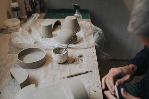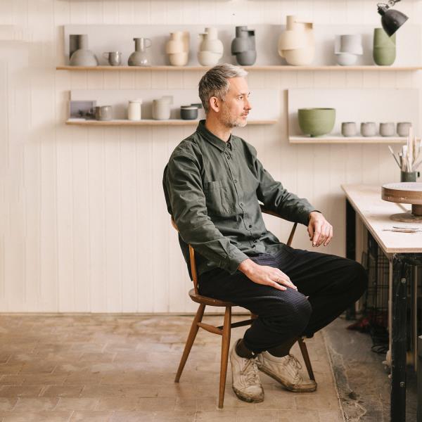 Derek Wilson established his studio in 2008 after graduating from Ulster University. He describes himself as a 21st century hybrid, part studio potter and part conceptual artist. His work centres around the potter’s wheel as a tool, however the finished product resulting from this traditional craft is contemporary abstract sculpture. This balance is echoed throughout Derek's work as he creates functionality within unconventional forms. By keeping the interiors of his works glazed, the potential of function exists, even if the forms speak more to artworks. His pieces are characterised by restraint, containment and subtle surface treatments. They are often fired up to five times to get the correct finish, bringing out the best of light and shadow.