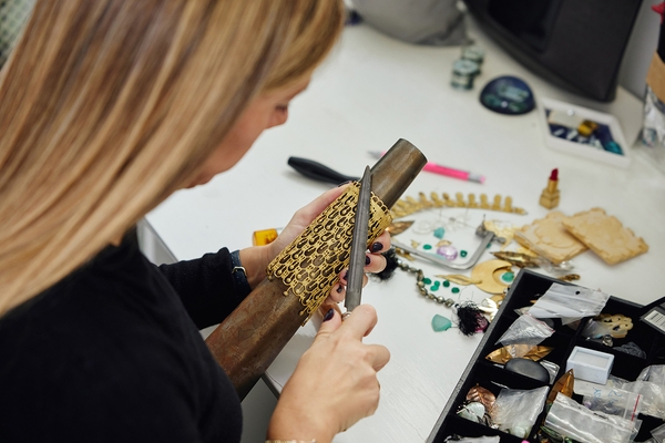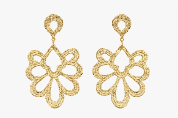 Elena Kougianou has found jewellery making to be "the perfect art form to express her world." As an art lover and enthusiastic traveller, her jewellery pieces reflect many influences, from various artistic movements to Greek heritage. Elena learnt her craft in her native Athens, specialising in the lost wax technique. She has drawn heavily on the country's rich jewellery history to enhance her knowledge. Just as she interweaves her inspirations, the making of her pieces combines age-old traditional techniques, like the filigree, with modern ones, like 3D printing. Her creations are characterised by graceful, feminine shapes, gold-plated metallic lace and the application of coloured gemstones.