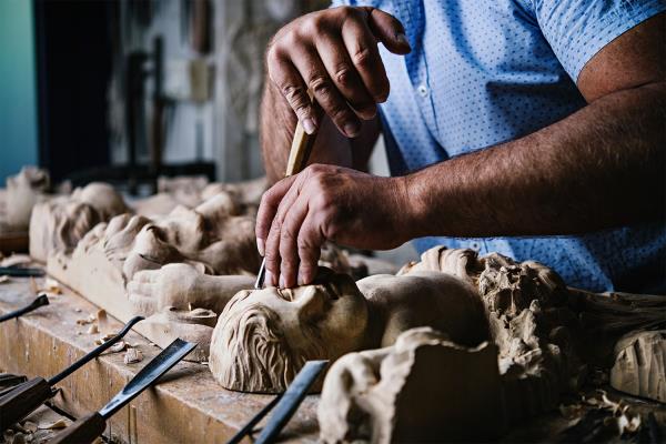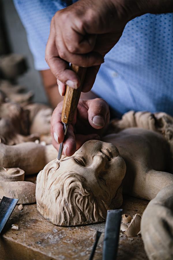 After training at the Bordeaux Arts Academy, the Ecole Boulle design school, and La Grande Chaumière art school, Etienne Rayssac then spent 11 years at the Fancelli Père studio studying and restoring historic monuments and rooms that decorate France’s castles. He then successfully founded his own workshop and now enjoys both small and large-scale projects with National Heritage sites, private luxury clients, and renowned designers. Although his early training was strictly classical, he has worked in Art Nouveau, Art Deco, and a variety of contemporary styles. “I don’t mind combining the classic with modern materials and techniques. I like the back and forth, it’s very enriching.”