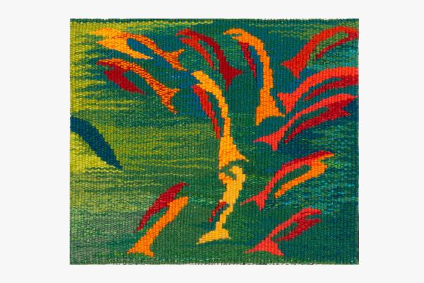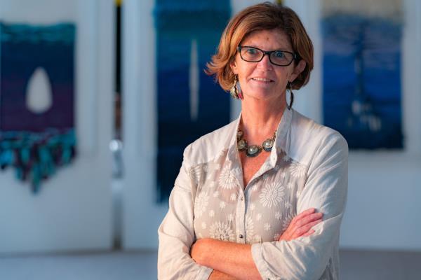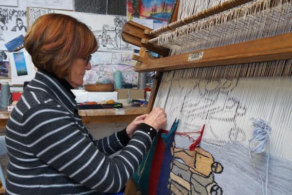 A skilled craftsperson with over 35 years’ experience, Frances Crowe is one of only a handful of tapestry weavers in Ireland. Her compositions tell complex stories. She wants her pieces to encourage empathy and dialogue around contemporary themes, be it climate change or separation due to emigration. She creates personal landscapes which represent global events. Her works are characterised by their unusual finishes often leaving her pieces raw to reflect the rawness of the subject matter. Environmentally conscious, Frances uses eco-friendly threads, sourced locally and often hand dyed. She feels the splendid isolation of being at one with her craft simulates personal growth as her tapestries physically grow at her fingertips.