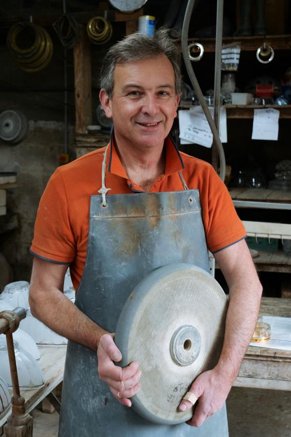 The history of Franck Benito's company, Cristal Benito, is one worthy of its own book, which happens to have been written recently. The story started when his grandfather José Benito arrived in Paris from Spain in 1925 and, with his brother, set up a workshop in Paris making perfume bottle stoppers. He placed his two sons, 14 and 16 years of age, in a crystal-cutting workshop and they later taught the craft to their father, who opened the company in 1952, specialising in unique, hand-cut pieces in crystal. They later moved into their own workshop – the same one Franck Benito works in to this day. Benito continues to expand the range of Cristal Benito creations, designing new models or revisiting existing ones, using the techniques passed on by his father.
