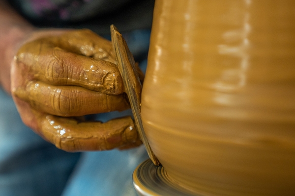 Giannis Apostolidis is a third-generation potter from Sifnos, who learned the craft from his father in their family workshop. As a potter who upholds the tradition of Sifnos, he keeps on creating on the side wheel, making both traditional and modern forms following the traditional technique which he adapts to new ideas. Giannis consciously chose to be a professional potter because it gives him the opportunity to transform his feelings into an object. Everytime he sits at his wheel to create, he feels relaxed and finds the creative process magical. Giannis believes that pottery cannot be entirely taught. “It is something you discover within yourself and develop with patience and will along the way. You have to remember that time is always an ally and not an enemy, and you have to follow it,” he says.