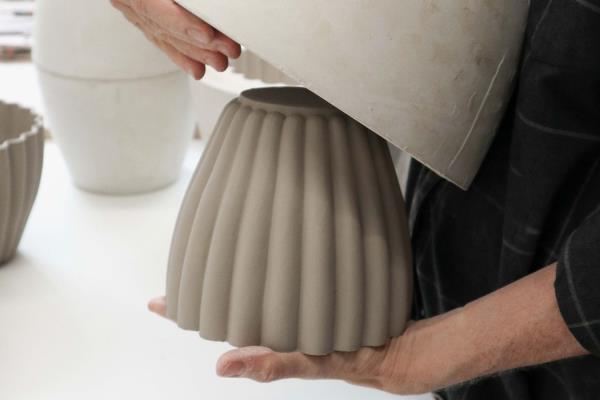 Very few people discover their niche in childhood, but Danish ceramicist Hanne Bertelsen is one of them. It was love at first “throw” when she joined a clay course in primary school, and she went on to study ceramics at the Danish School of Design. After graduating in 1991, she immediately established her Copenhagen workshop where she has expanded her modern, curious and clean ceramic and porcelain assortment ever since. Permanence, however, only applies to her passionate work ethic. As far as Bertelsen’s aesthetic goes, it continues to explore the organic movements and tactile swiftness of nordic nature.