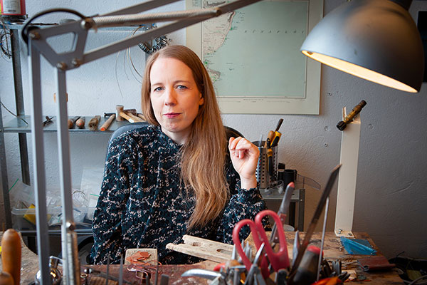 Helga Mogensen's interest in jewellery began at a very young age. Her mother noticed her interest and knew it would be Helga's life's work. On turning 20 years old, Helga began working with metal and exploring how materials work in relation to the body. Her pieces are versatile and designed to interact with different parts of the body. For instance, a ring that can also be worn as a necklace or bracelet. From these experiments Helga developed the desire to study jewellery formally. She travelled to Scotland and here she graduated from Edinburgh College of Art in 2007 with a BA in Jewellery and Silversmithing. She has exhibited her work widely in Europe and the USA and has now returned to her home country of Iceland and lives and works in Reykjavík.