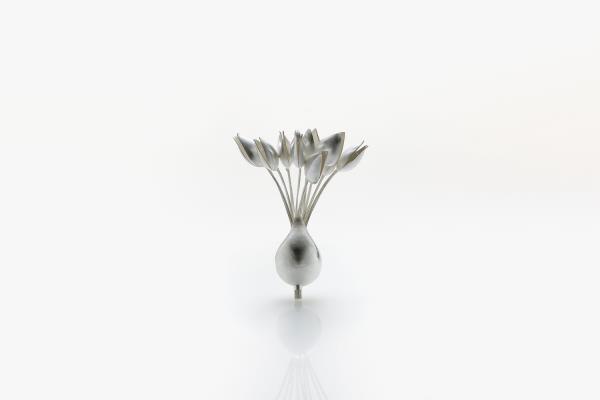 Hye Jung Shin finds balance in working on her art whilst taking care of her family. She feels the warmth of objects silently placed in her surroundings. Her husband is also a sculptor and so in this artistic atmosphere in the family home, her daily life influences and inspires her work. She chose silver as the main material for most of her work as it portrays cycles of growth and extinction in patterns and images. "Time put into works of silver is like space on a blank paper, which is more valuable than ornaments," she says. Hye Jung expresses the simplicity of nature by removing superfluous elements.