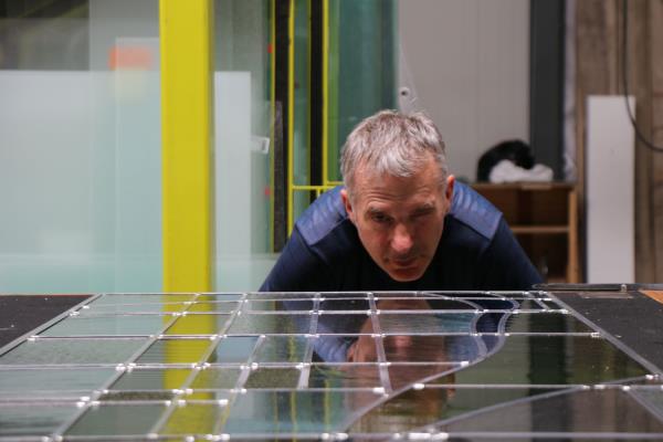 John Dierickx’s love for stained glass came about rather by accident. Working at a glass company fuelled his fascination with stained glass. He started to experiment with it after his regular working hours. Step by step, he built his own network of clients, and in 1991 he founded his company Artglas. In 2009, he moved the company to a new building with a showroom of a 100 square metres. “Over the years, I have specialised in abstract creations consisting of straight and curved lines. With these designs we make a difference to our clients . Whilst previously people just expected a perfect execution, nowadays they want to be a part of the design process, thinking with you to create a unique design.”