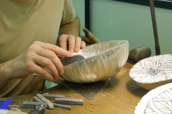 For over 25 years Kevin Grey worked in factories making metal parts for luxury cars, but as the industry became less about human skill and more about machines, Kevin felt a desire to return to making things by hand. So he decided to give up his job and retrain as a silversmith. “It just felt right,” he says, and indeed it was the right decision, since he is now one of the UK’s foremost silver sculptors. Working out of his studio in the famous Birmingham Jewellery Quarter, the home of British jewellery making for hundreds of years, he has won the prestigious Goldsmith Company Award three times.