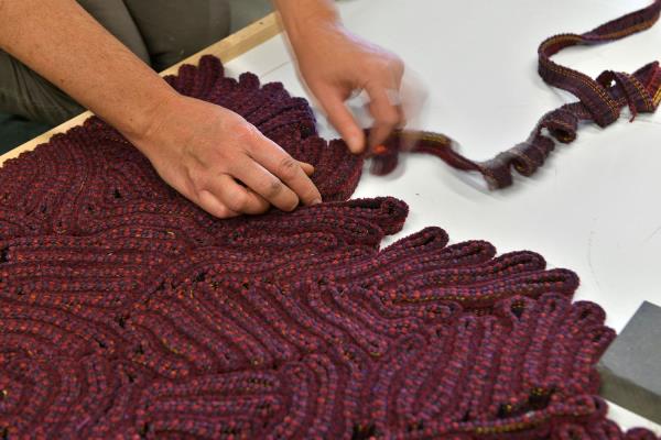 After wanting to learn a more hands-on craft than Graphic Design, Laure Kasiers enrolled in Textile Design. She made her first rug over ten years ago when she was expecting her first child. As she had to work a lot from home, she developed her own technique to create innovative surfaces and ended up creating three prototypes for her graduation. Ever since her initial introduction to textiles, Laure has always concentrated on thick and dense material – fit for upholstery rather than lace. The idea of creating a textile that was the object in itself and not a textile that will be incorporated into another object was central. Since then, inspired by natural shapes, patterns, structures and colours, she has created a variety of rugs and tapestry.