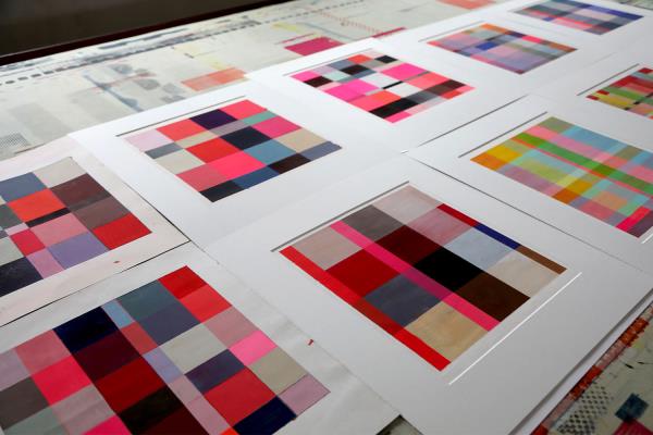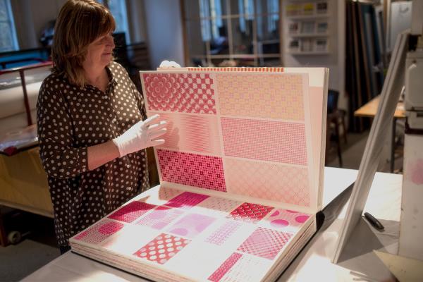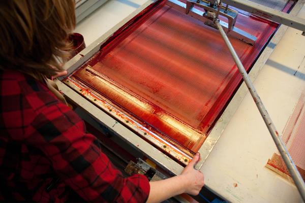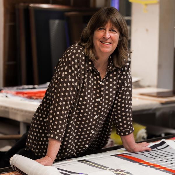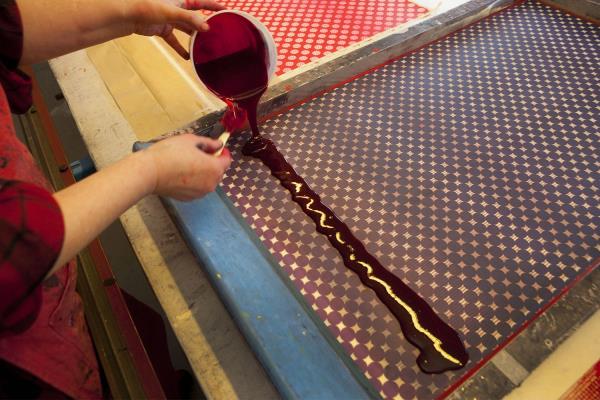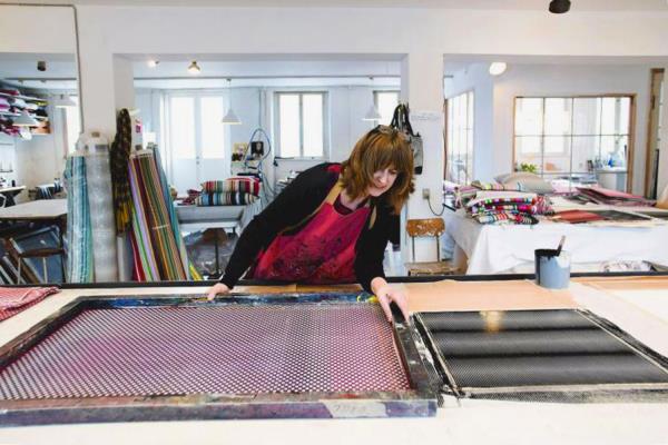 Lisbet Friis is a craftsperson, a textile designer, a master printer and an artist. Since she graduated from the Danish Design School in 1985, she had her studio at Raadvad Factory, just outside Copenhagen. Her passion literally exploded the day she saw the work of one of her mother’s students. "My mother worked with textiles as well as with ceramics," she recalls. "Once one of her students showed me a little handprinted fabric sample: a red dot on a green background. In that moment I knew that I wanted to work with textiles." At the Danish Design School, she learned the craft from Joy Boutrup, a textile chemist, who taught her all about colour chemistry and printing methods. Lisbet’s commissioned hand printed textiles include specific sites like the Royal Yacht ‘Dannebrog’ for her Majesty Queen Margrethe of Denmark and colours for the Ethnographic Collection of the National Museum of Denmark in collaboration with architect Merete Ahnfeldt Mollerup.