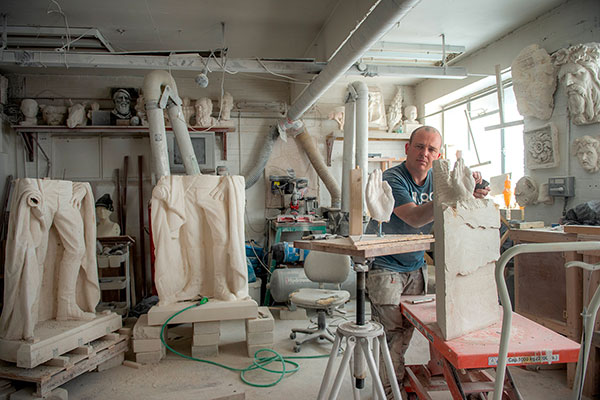 Here they are close to the artists and clients who might otherwise have gone to Italy to find artisans. The atelier specialises in traditional stone carving, with a focus on three categories: restoration of art, fabrication, and public sculptures. They work on a wide range of projects and commissions and say, “It is exciting to be working on a medieval church one week, and on a sculpture for the Miami Art Festival the next.”