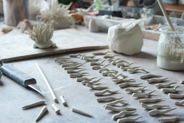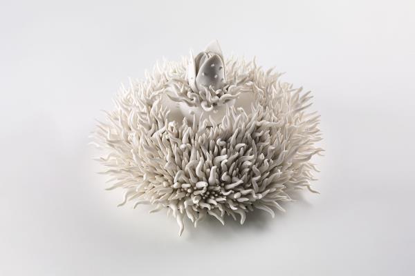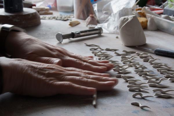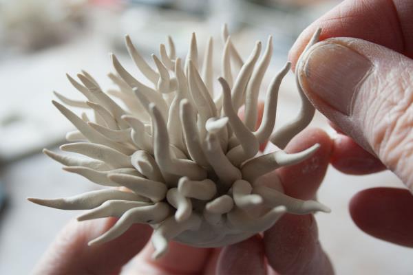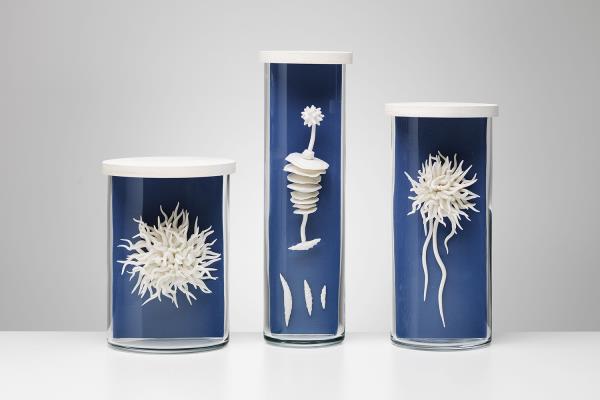 There are not many people that have found their happy place, but Lorna Fraser has: she has found it in the feeling of putting her hands to clay. She creates sculptural one-off pieces, small series of works and site-specific installations. Lorna has her own studio in the heart of Edinburgh, a short walk from the Royal Botanic Garden, which provides her with endless inspiration. “I delight in looking at all types of plants – from the giant leaves of tropical water lilies to the formation of tiny lichens growing on a wall.” She also draws inspiration from the huge collection of pressed plant specimens and became one of three makers representing Scotland in the British Pavilion at the opening of the 2017 Cheongju International Craft Biennale in South Korea.