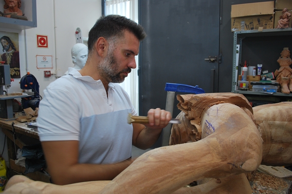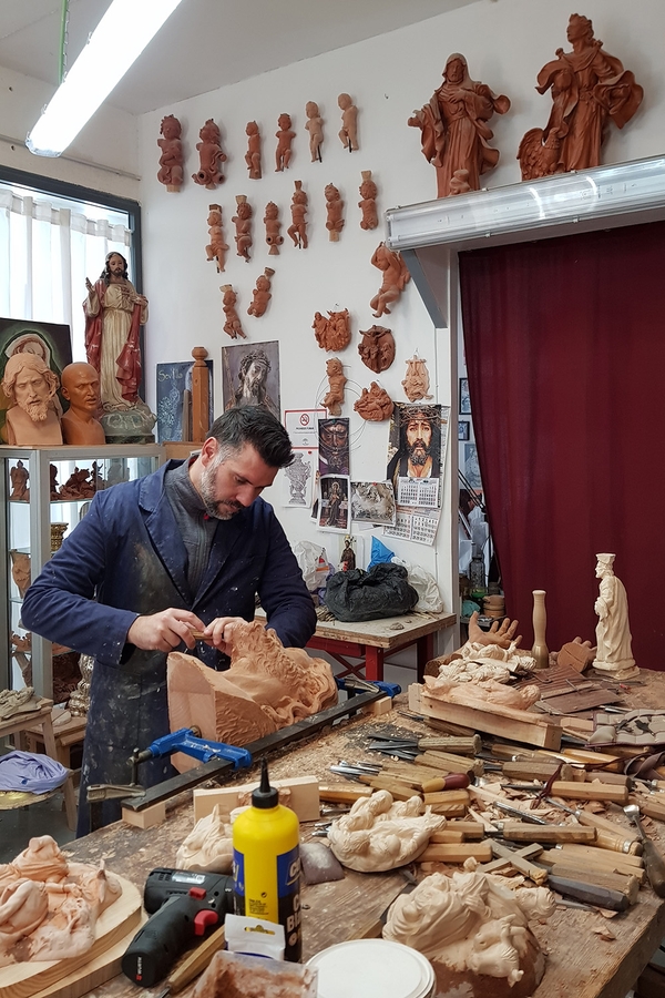 It is nearly impossible to keep the city of Seville separate from Semana Santa, the Holy Week of the Roman Catholic Church where devotion meets tradition, deeply rooted in the soul of its inhabitants and consequently into the craftsmanship community. Mariano Sánchez del Pino prides himself in stating that since he was a child it was clear to him he would become an imaginero, a sculptor of religious themes. Trained in the local school of arts and crafts, Mariano has always been attracted to art and especially to polychrome wood sculpture, a craft developed in Seville over centuries. His first commission dates back to when he was 17 years old. Since the early 2000s he has been working solo in his studio, specialising in wood sculpting, carving and gold engraving.