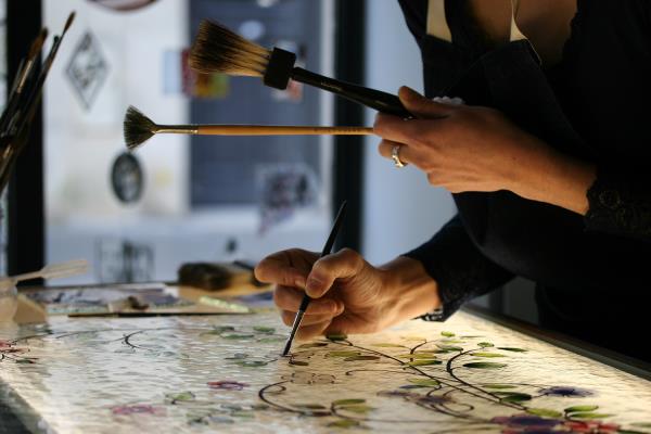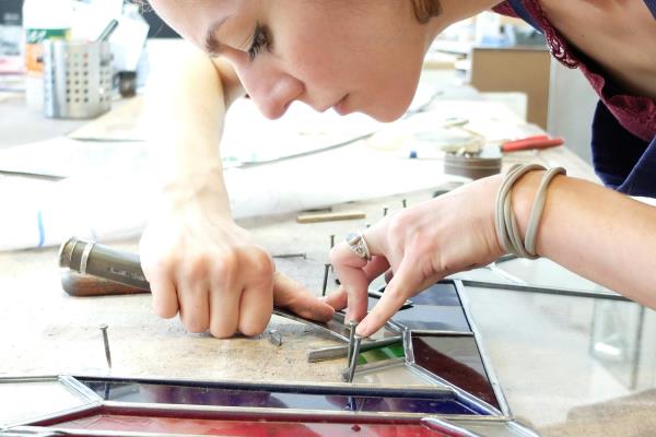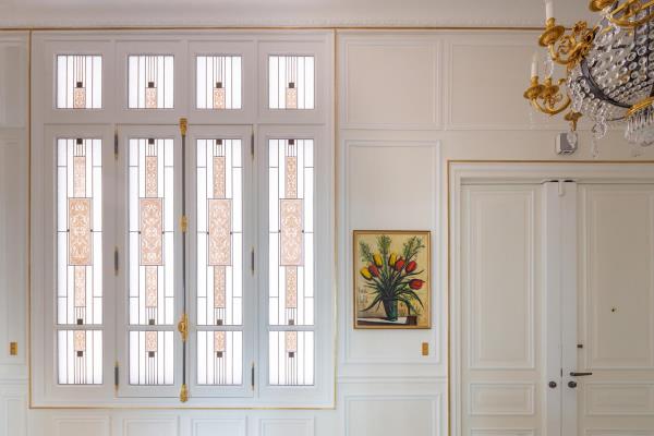 Since opening her own workshop in 2015, Marie Grillo specialises in the creation of stained glass windows for architecture projects. She boasts a rich practical and theoretical curriculum which enables her to carry out projects from A to Z, from the artistic research phase to the installation. Drawing inspiration from Franck Llyod Wright’s linear patterns and Charles Rennie Mackintosch’s gracious curves, her work usually involves matching straight graphic rhythms with more organic, spontaneously dynamic gestures. Her stained glass windows are always conceived as architectural works in their own right, with their innovative and singular aesthetics that express Marie's creativity and an element of the unexpected.