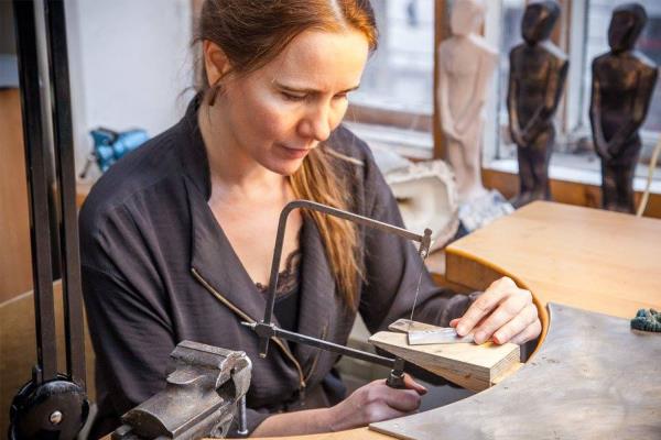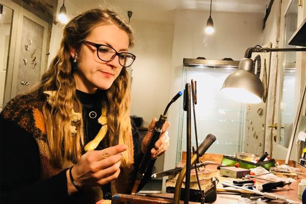 Marita Lumi's pieces are unique like her personality, that shines through all of her handmade jewellery. She loves to explore the different worlds of science through her work, by experimenting with organic materials, mixed in galvanoplastic through electroforming techniques. Yet, at the same time Marita masters the traditional fine work of installing stones, like zircons and even more precious gems into her pieces. A childlike curiosity is instilled in her nature, whilst she treads this magical field of precious metals. For her it’s a marvellous journey of exploration without an end, by combining the traditional artisan techniques with modern science.