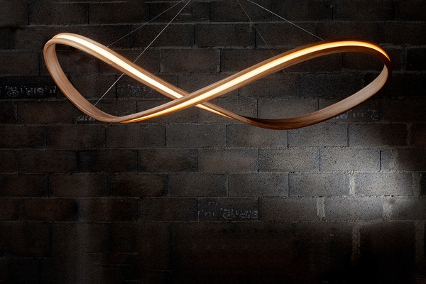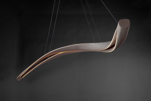 Mark Collett injects modernity in woodworking by creating elegant light sculptures of clean design. Located in France, in the heart of nature, the atelier M.A.Aston specialises in the creation of bespoke luminous suspensions made from local wood and crafted with the steam-bending technique. By perfecting this process of naturally steaming the wood to make it malleable, Mark sculpts it into curved, flowing shapes, in a quest for simplicity in its purest form. As woodworking is a passion that runs in his family, he learned the trade from his father. But it is his very first encounter with steam-bending that inspired him to fully embrace the creative side of the craft: “It seemed to open up a whole new world to me, a world where the only limits where my imagination.”
