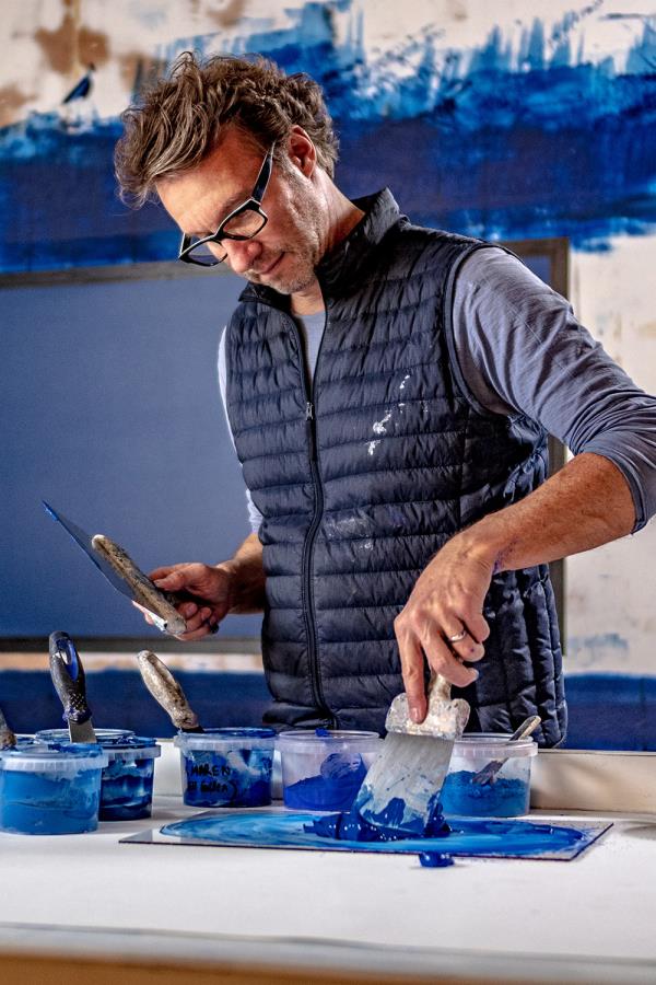 Artist and creative director of his eponymous studio, Martin Berger explores matter through motion and light, offering a unique perspective on decorative arts. His mural creations are imagined as a choreography in which body and matter perform to photograph a gesture in space. With over 20 years of experience, Ateliers Martin Berger is today a reference in the field of decoration, working with luxury houses and architects. Martin relies on an experimental approach to constantly innovate with new processes. He has notably created the concept of paper marquetry, in which materials are worked on flexible supports for unlimited textural effects and plays of light, with no constraints of dimensions. “How do we reflect our energy in a space?”, is Martin's quest.
