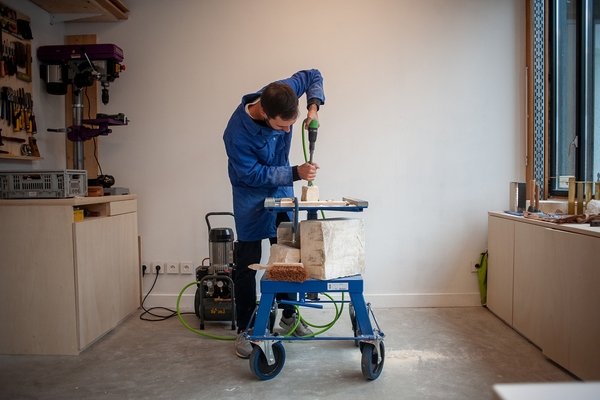 Maxime Bellaunay specialises in stone sculpting and woodworking. He discovered his passion during a transformative high school internship in a luthier's workshop. Working with stone, wood and metal, Maxime immerses himself in nature, exploring rocks and absorbing the landscapes and craftsmanship of others' works to shape his own creations. Merging traditional techniques with modern innovation, Maxime integrates contemporary aesthetics into his work. The result is a harmonious fusion that makes his pieces both functional and sculptural, bringing landscapes into interior spaces. He produces unique pieces and limited editions through collaborations in France and Japan.