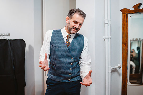 Nikos Dallas learned the craft of tailoring from his father, who had a tailor's workshop. This is where he was first inspired and acquired his basic knowledge, later enriched by other distinctive professionals he worked with. Having studied fashion design at AKTO Art & Design in Athens, and pattern at M.Muller & Sohn, Nikos is however self-taught at several CAD-CAM pattern design programmes. As a master tailor, he loves to study and research old and modern patterns, and tailoring methods. Nikos opened Sartoria Nikos Dallas in 2014 in the centre of Thessaloniki. For him, tailoring is unique because it combines many diverse skills: technical, artistic and social.