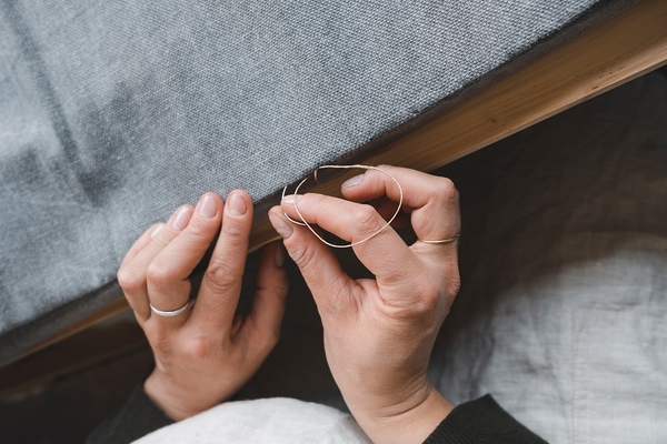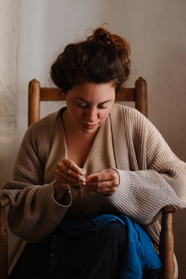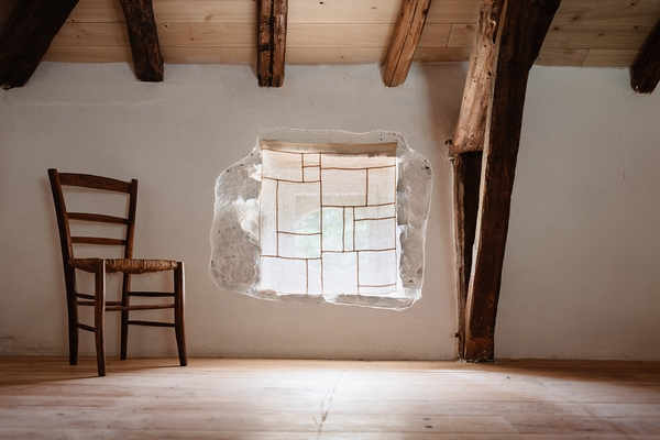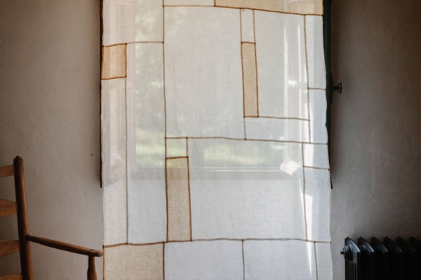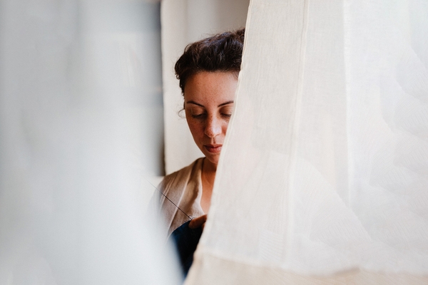 From upholstery to textile finishing and natural dyeing, Pauline Clotail explores her love for fabrics by combining different skills. Right after studying literature, she remembers thinking about her grandfather who was a watchmaker, and suddenly felt the desire to return to a profession that would reconnect her with materials and manual work. She therefore specialised in seat upholstery. Before long, her fondness for natural fabrics inspired her to learn the age-old techniques of plant dyeing. Today, Pauline brings these two disciplines together and concentrates her work on the creation of delicate net curtains made according to the Korean Bojagi method. Fine pieces of fabric are delicately sewn together, and when placed over openings, they gently play with the light.