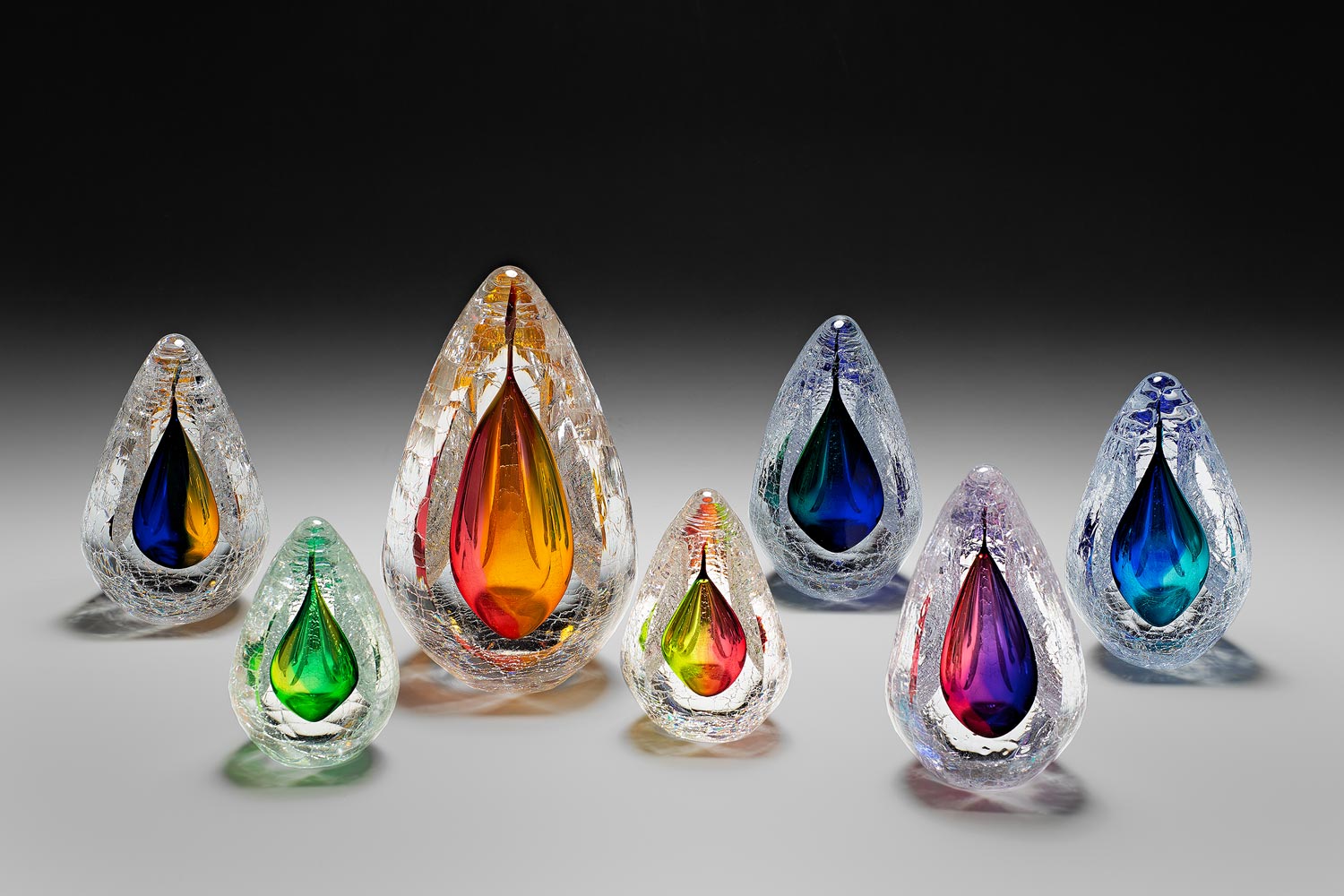 Remigijus Kriukas is one of the most renowned Lithuanian glass artists, working in this field since 1985. He graduated from the State Art Institute of Lithuania (now the Vilnius Academy of Arts, Kaunas Faculty), part of the first intake of future glass artists. Since then, glass has become a way of life for him. In 2000, Kriukas founded a glass studio in Panevėžys, where all his creative work takes place, where his workshops are held and where glass artists from other countries gather biannually to blow glass to the accompanying sound of jazz. Remigijus’ works have won many international awards. He regularly participates in international symposia and exchanges of experiences and ideas. His glass sculptures are technically complex, decorative yet at the same time powerful.