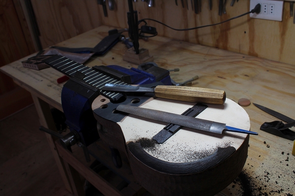 Roberto Hernández Céspedes began his apprenticeship in 2003 at UMCE University, where Latin American lutherie workshops were held for music students. "I was not a student at that university, but I was able to talk to teachers and get them to accept me in their classes," he says. He learned there for three years. "I worked with the maestro and did an apprenticeship in his personal workshop for a further three years." Roberto then contacted master Carlos López Menares, and learned classical guitar construction from 2012 to 2018 with him. He also went to Italy to learn baroque techniques for historical guitar construction with master Gabriel Aguilera. "During all this time I have applied elements of each master in my creative work. Currently, I am working on expanding my knowledge to violin making, with Hernán Dávila," adds Roberto.