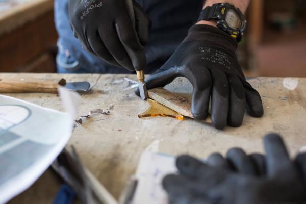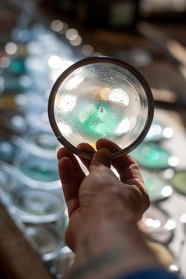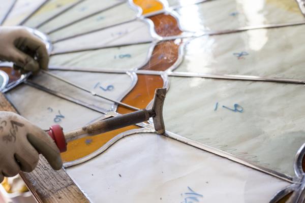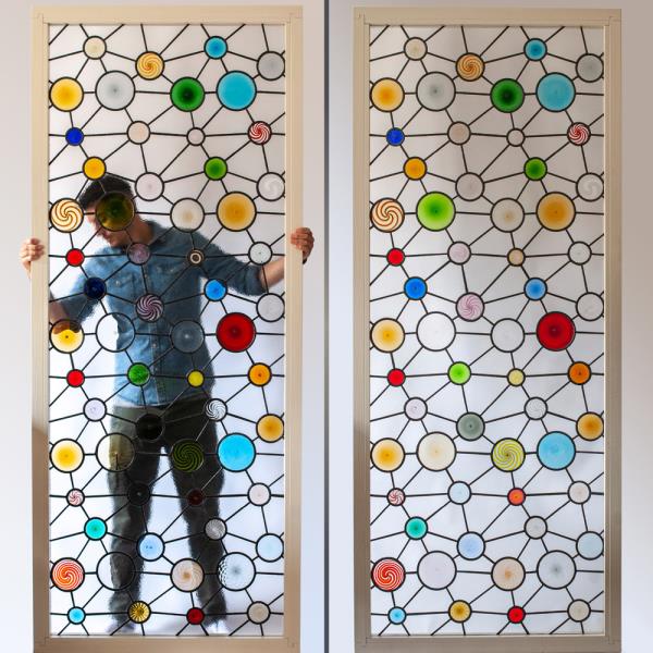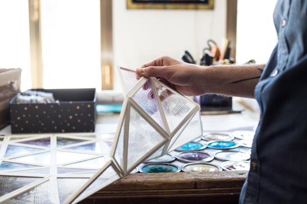 Stefano Bullo is the only maker of artistic stained glass left in Murano but he is not a nostalgic old-style artisan. His decision to take over the family workshop in 2014 came after his art studies, and his story is not so much a traditional one, but rather the path of an artisan and artist looking for his personal style with an open mind. Stefano is a painter and an experimenter, open to innovative technology and collaborations that help him to improve his techniques and express his own style. He continues the family tradition of restoring antique glass windows – including some of the most prestigious Venetian monuments and churches – and creates new, resolutely contemporary designs and projects, such as his surprising vases made of glass fabric.
