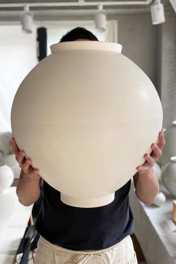 To Sung Hyeoun Cho, the moon jar is the best art you can make with a potter’s wheel. "It is not easy to make the shape of a large round jar while also saving the shape of the full moon from collapsing in the high temperature of the kiln," he explains. It requires great skill, devotion, and luck. Sung Hyeoun started training as a ceramicist when he was a teenager. He has a hearing impairment and so being a craftsman in a calm atmosphere and working by himself from start to finish suits him very well. Even though it can be lonely and tiring, he says he feels secure while creating. Now Sung Hyeoun runs a ceramic studio called SOSOYO with his wife. 'Sosoyo' means 'small and simple atelier'. It also contains the meaning of always fundamentally cherishing the little things in life.