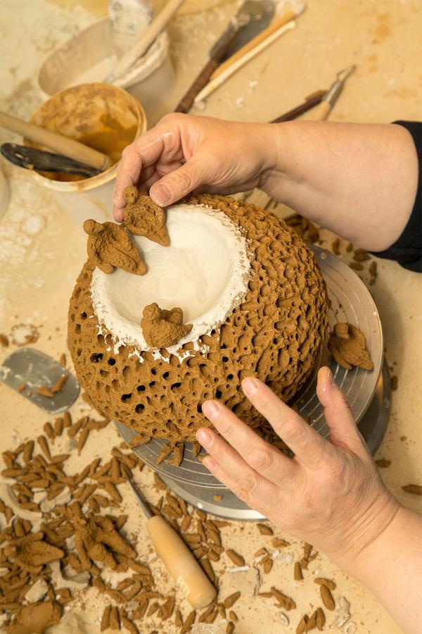 Svetlana Matuša, known as Lana to her friends, finds her inspiration amid the mysterious landscape of Iceland. Wandering through this topography, forged by fire and ice, she reflects on the beautiful contrasts that can be found there, such as soft, delicate moss covering strong, hard stone. The stories of lava trolls fighting each other in this wild terrain echo in her ears. Her work is steeped in the culture and environment in which she now lives. Originally from Serbia, Lana has made this alien landscape not just her home but her muse. Using her skills as a scientist and an artist she has a unique understanding of materials, which enables her to create sensitive responses to the colours, textures and structures that surround her.