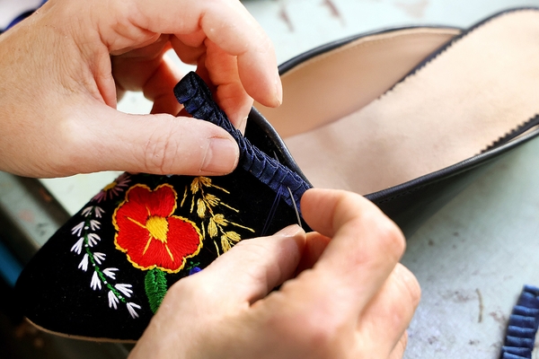 • Tibor handcrafts shoes with traditional Hungarian folk patterns