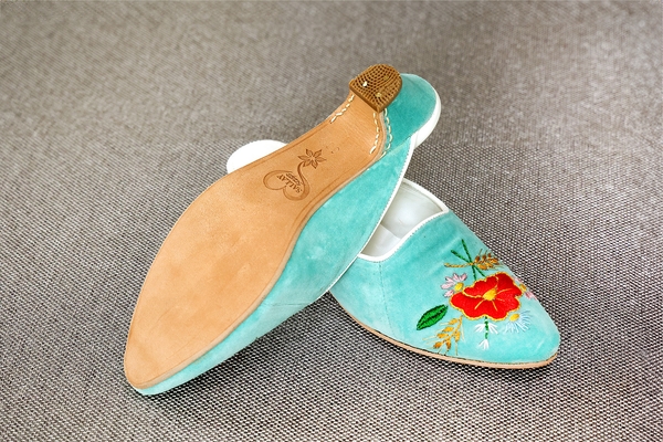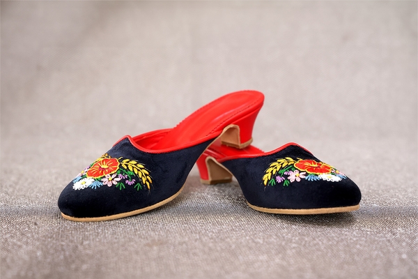The slipper is based on the technique brought to the region by the Turks during the Ottoman occupation, but the Szeged version has a slightly raised heel for a more elegant look, as well as incorporating the floral patterns characteristic of Hungarian folk art.