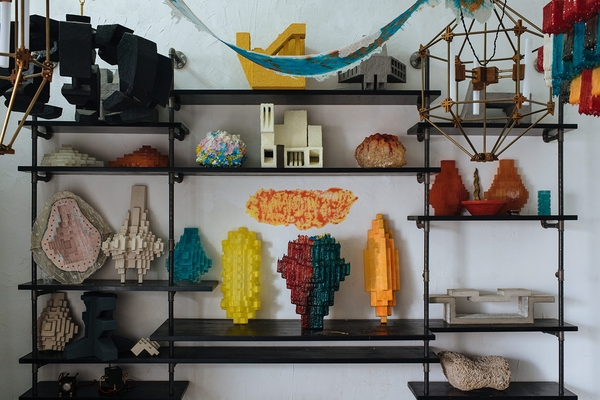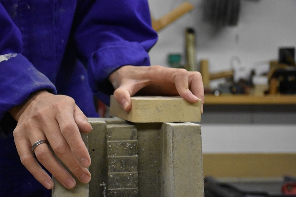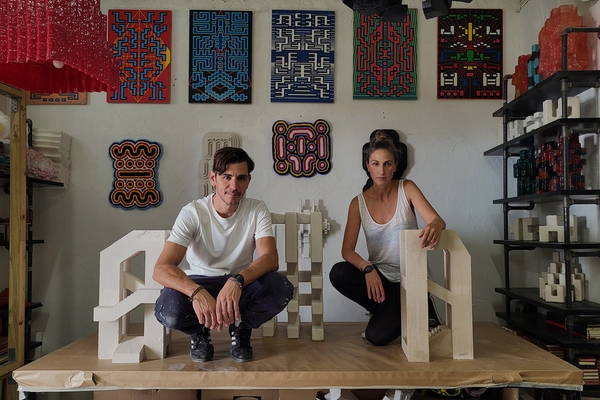 Pablo Párraga trained in cabinetmaking at the Paloma Institute in Madrid and Trini Salamanca is a self-taught artisan. They work together, bringing diverse materials into interaction with each other, including wood. "Epoxy resin has allowed us to develop a manual application method that requires rigorous control over the material: its catalysis, humidity, and temperature," explains Trini. "We have also worked with organic stucco and spray paint, as well as paper pulp, among other materials." For the duo, tradition and innovation in their work come from the blend of material and its use. "Between the object itself and what we end up creating. Between the technique and the material research to achieve the desired effect, that is where the balance between innovation and tradition lies" says Pablo. "Las Ánimas works on each piece in a kind of exploration ritual, alchemy in the studio where we work on each piece from start to finish."