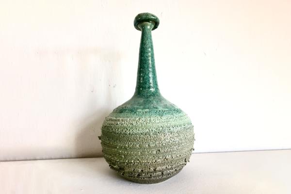 Vassos Demetriou was born in 1954 in occupied Famagusta. After graduating from Instituto d’Arte Ceramica in Italy, he returned to Cyprus and set up his own workshop in 1982. His first objects were raku pots and vessels but he eventually became an acclaimed potter, frequently receiving awards at the Panhellenic Ceramic Exhibition: 1st prize (1990), 2nd prize (2000, 1988), 3rd prize (1986 and 2010). He has had six solo exhibitions in Cyprus and has participated in various group exhibitions in Cyprus and abroad (Italy, Egypt, Malta, Kuwait, Bulgaria, Australia). He is quite optimistic about pottery, not considering it an endangered art, judging from the pottery classes he offers to both amateur and professional enthusiasts of the craft.