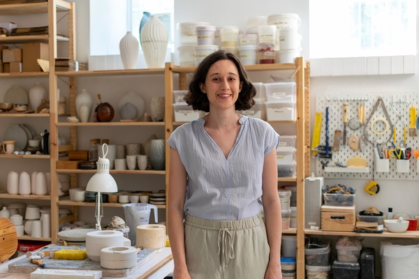 Zsuzsanna Sinkovits is one of Hungary's most renowned ceramic artists. She received a special prize at the Hungarian Design Award 2022, first place in the Student category of the Pécs National Ceramics Biennale 2021, and her diploma collection was awarded the Rector's Diploma Prize, too. She uses different techniques, but the task always determines which one she chooses – in her Geoform collection, she is inspired by the Hungarian landscape itself, as each vase is a ceramic transcription of the geological formations that surround us. As a passionate hiker, Zsuzsanna likes to explore the landscapes of Hungary, which she then reproduces in her objects. From the bauxite mines of the Mecsek Mountains to the dried-up bed of Lake of Sziksós, she reproduces the landscape's aura in her works through her use of glazes, pigments, firing choices and forms. In her most recent work, Zsuzsanna is experimenting with unique glazes.