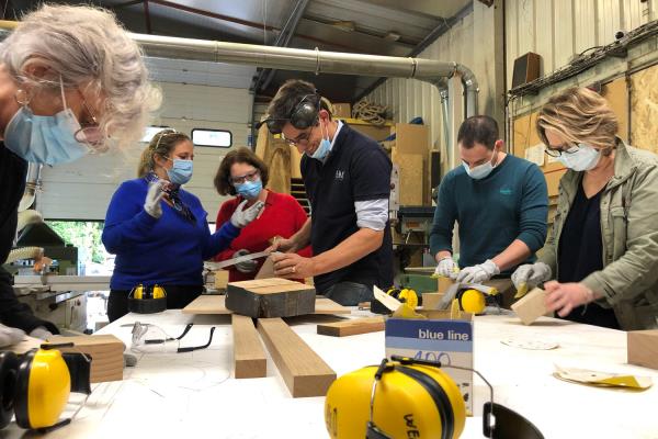 Having worked in advertising, Bruno de Maistre knows well the importance of teamwork and experiences now daily the joy of crafting. Combining these aspects, Bruno offers this course for business teams with the aim of bringing people together to work on a common piece: from drawing to machining, you will collaborate to create an object such as a chessboard or a wooden puzzle. To begin this journey of team building, each will receive invitations engraved on veneer sheets to come and discover cabinetmaking, gestures and precious types of wood. You can also create individual beautiful wooden pieces to take home, such as trivets or kitchen boards.