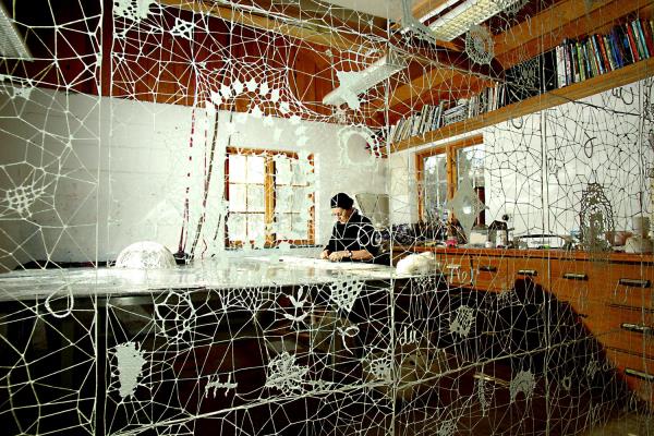Gjertrud Hals makes objects that vary in nature and in the techniques applied: she casts, sprays, cuts, knits and weaves “net artworks” made of thread, metal wire, paper, paper fibre and resin. Like gathering world-wide myths and experiences, collecting material and objects is also an important part of her work process. Gjertrud welcomes visitors to her workshop in Molde, an ancient city located on the Romsdal Peninsula, on the north-western coast of Norway. In her studio, she shows techniques and materials that she uses to create nets in mixed media, and demonstrates the types of equipment she uses to build two and three dimensional objects. Visitors will have the opportunity to test themselves and take inspiring photos of her artwork.