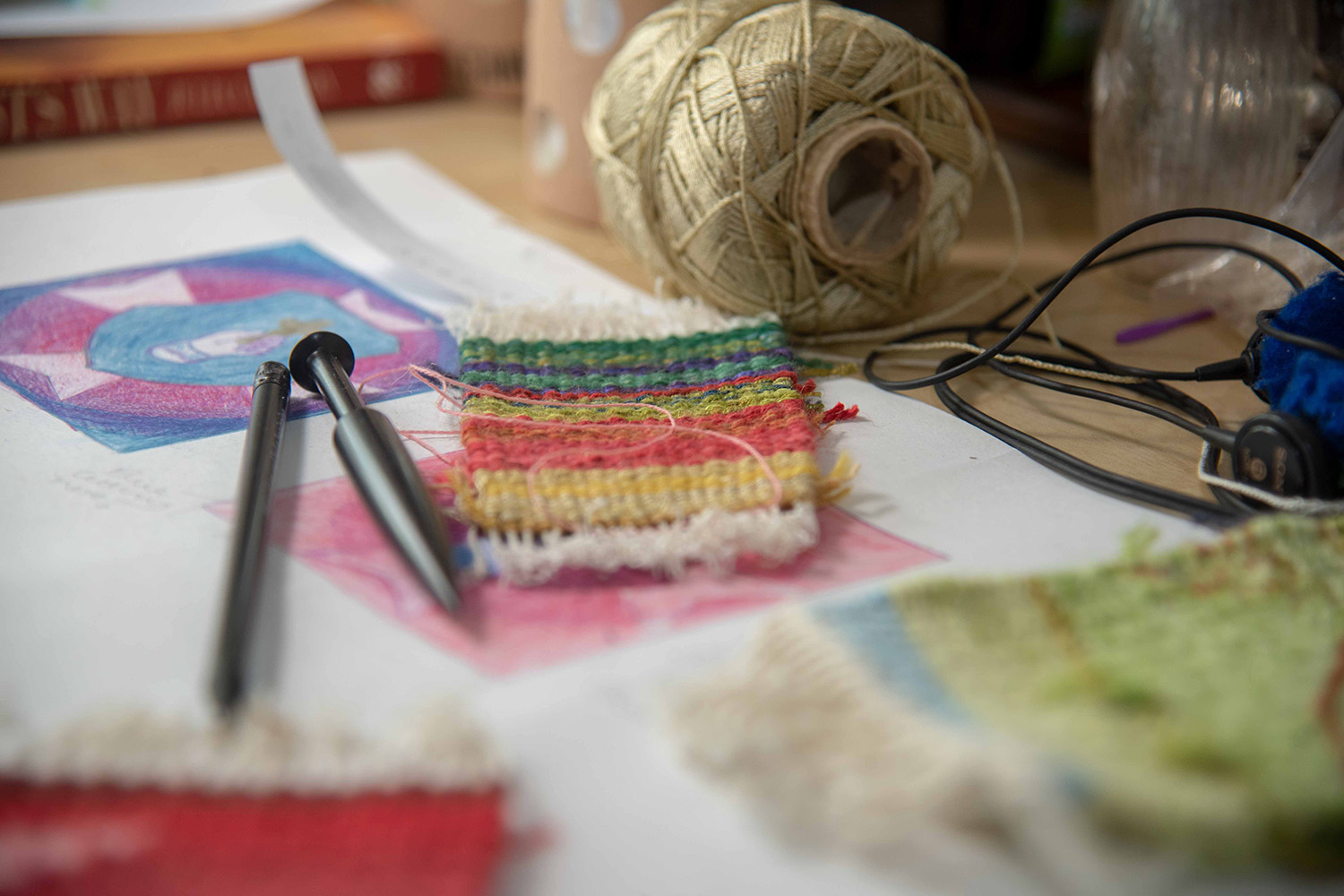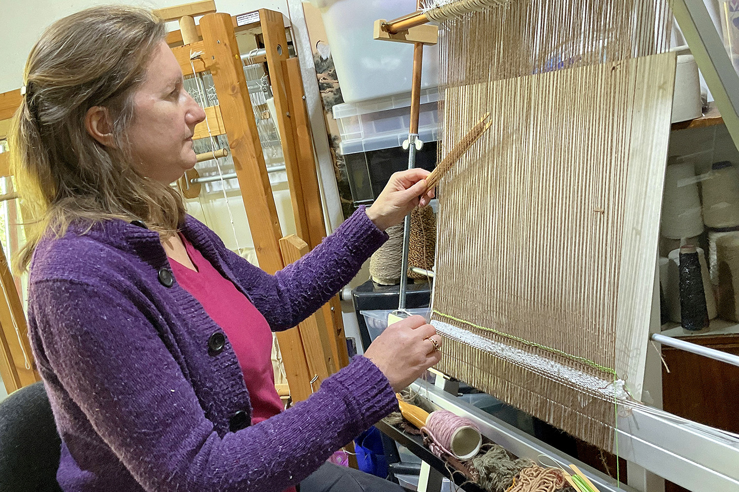 Jackie Bennett offers this one-day workshop in tapestry weaving for individuals, in-person or online. It provides the basis for learning any type of weaving. A small weaving frame is used to weave a small sample piece, whilst learning a range of techniques. A wide variety of wool yarns are provided, allowing participants to choose the colours they wish to work with, and online courses include a kit of yarns. This course further teaches how to put the warp on a small frame and prepare to weave, plain weave, angles, and curves, how to design weaving and how to work with colours and textures, amongst other techniques. £30 per hour for one-to-one. Materials are priced separately.