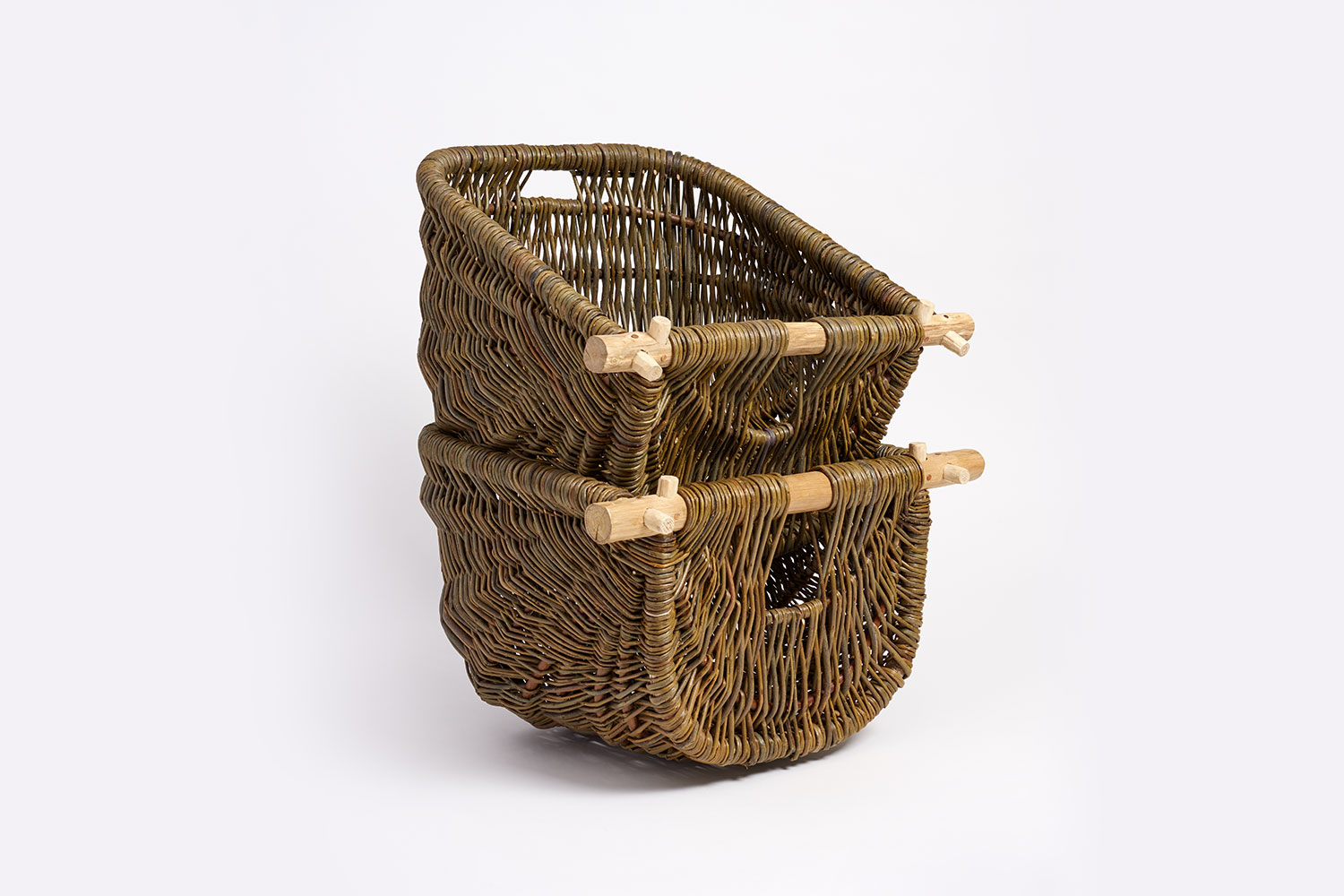 These pieces are based on traditional French oyster baskets. Made from sweet chestnut and willow, the sturdy baskets are great for storing logs or blankets.